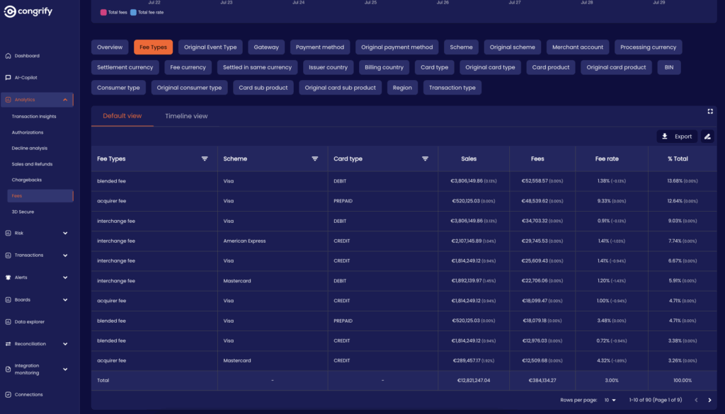 With Congrify’s payments intelligence and observability platform, you get a solution that dives deep into multiple data dimensions and allocates every cost to a specific category, enabling immediate and actionable analysis.